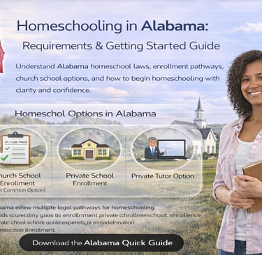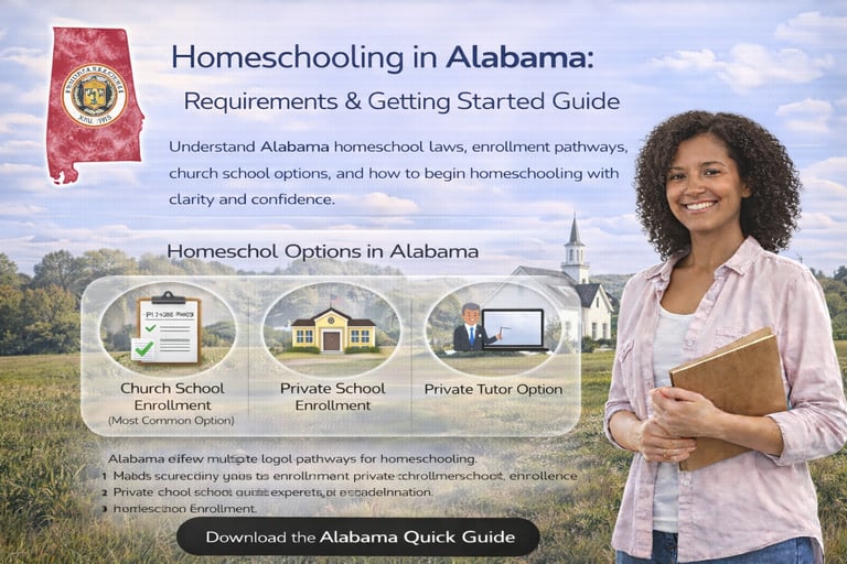 Understand Alabama homeschool laws, enrollment pathways, church school options, and how to begin homeschooling with clarity and confidence.