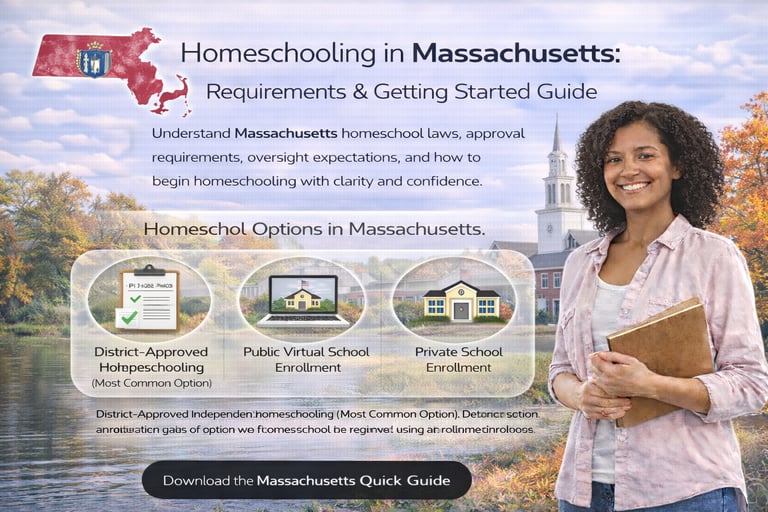 Understand Massachusetts homeschool laws, approval requirements, oversight expectations, and how to begin homeschooling with clarity and confidence.