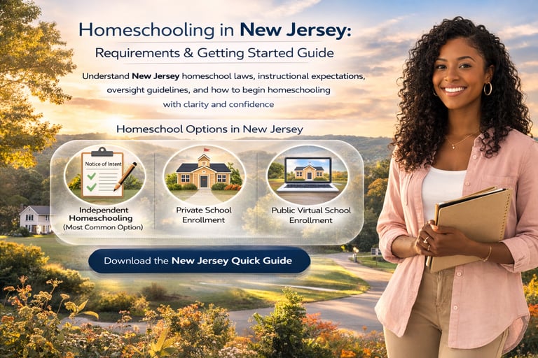 Understand New Jersey homeschool laws, instructional expectations, oversight guidelines, and how to begin homeschooling with clarity and confidence.