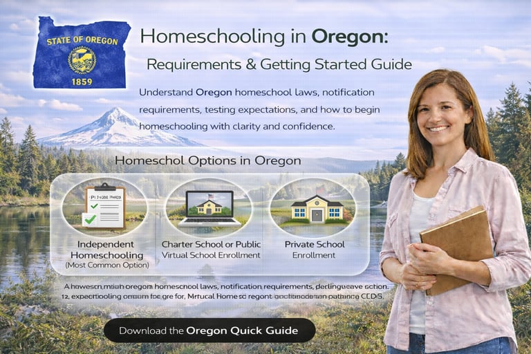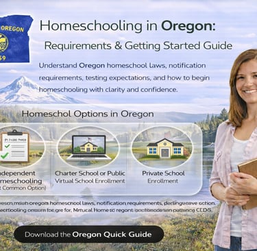 Understand Oregon homeschool laws, notification requirements, testing expectations, and how to begin homeschooling with clarity and confidence.