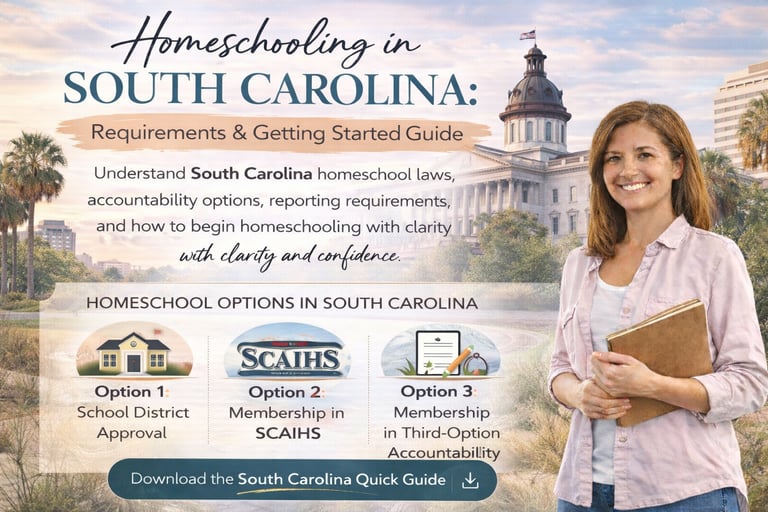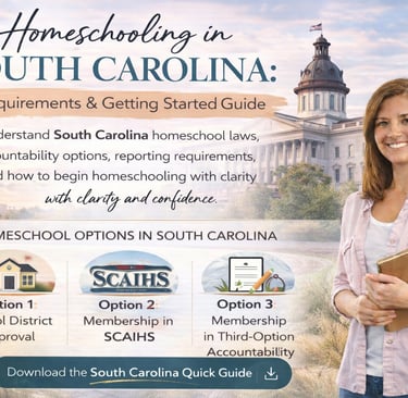 Understand South Carolina homeschool laws, accountability options, reporting requirements, and how to begin homeschooling with clarity and confidence.