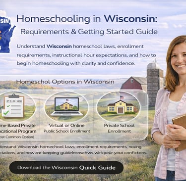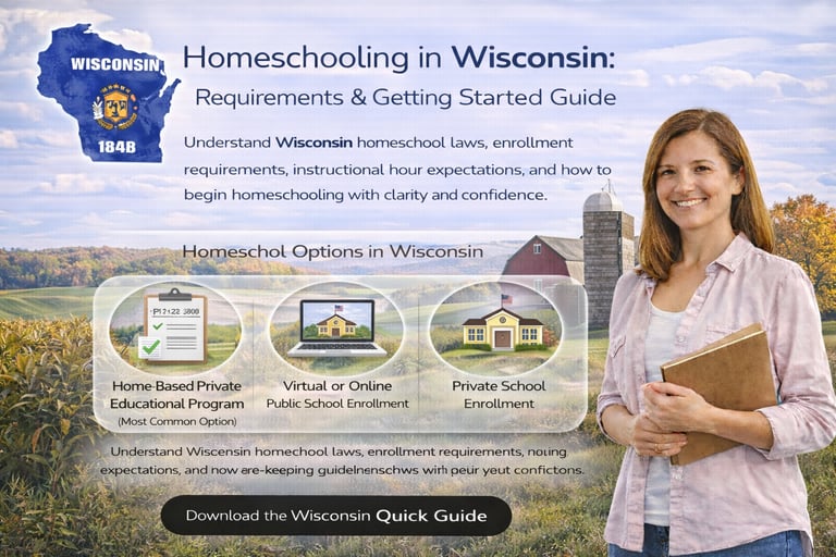 Understand Wisconsin homeschool laws, enrollment requirements, instructional hour expectations, and how to begin homeschooling with clarity and confidence.